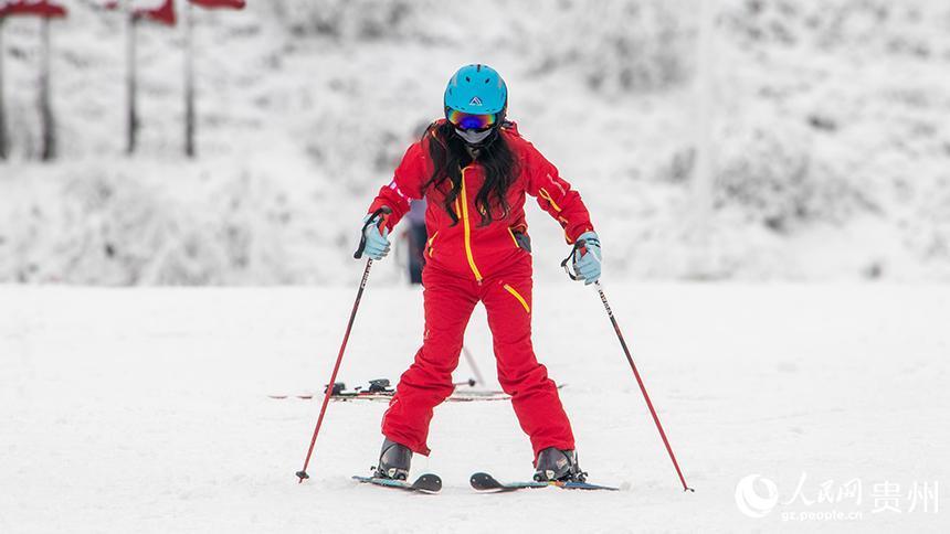 游客在梅花山国际滑雪场滑雪。人民网 黄小桃摄人民网六盘水1月8日电 (黄小桃)1月8日,位于贵州省六盘水市钟山区的梅花山国际滑雪场2026年雪季正式开板,吸引众多游客前来体验冰雪乐趣。